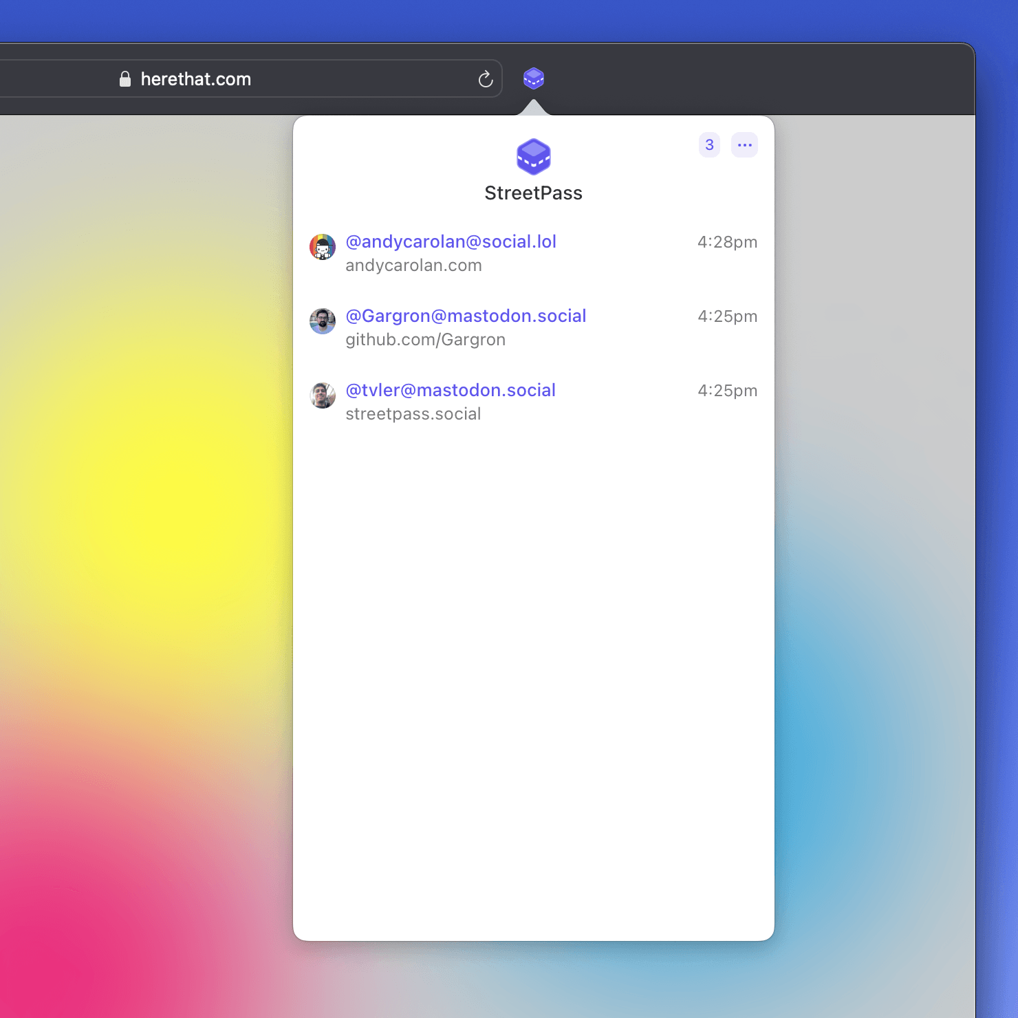 3. Browse the web as usual. StreetPass will build a list of Mastodon users made up of the websites you go to.